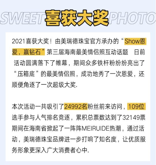 第三届海南省美瑞德珠宝最美情侣照活动-获奖名单公布